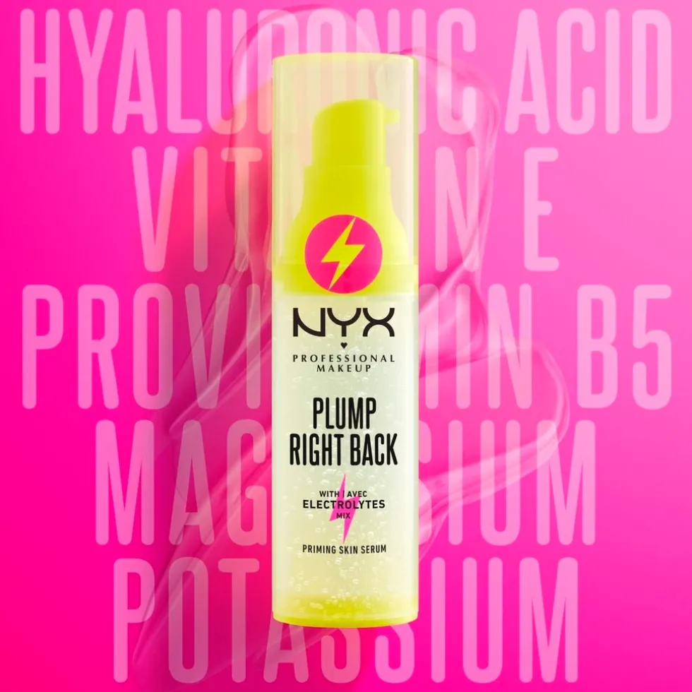 De NYX Professional Makeup Plump Right Back Plumping Serum Primer zit boordevol vitaminen en elektrolyten waardoor je huid wordt gehydrateerd en je make-up extra lang blijft zitten.