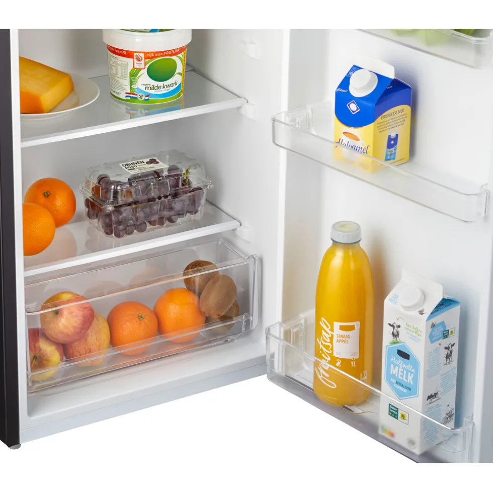 De koelkast heeft een stoere uitstraling dankzij de zwarte kleur in combinatie met de geïntegreerde handgreep.Hij heeft een hoogte van 86,5 cm en is hierdoor ideaal om andere keukenapparaten zoals een magnetron of bakoven op te plaatsen.
