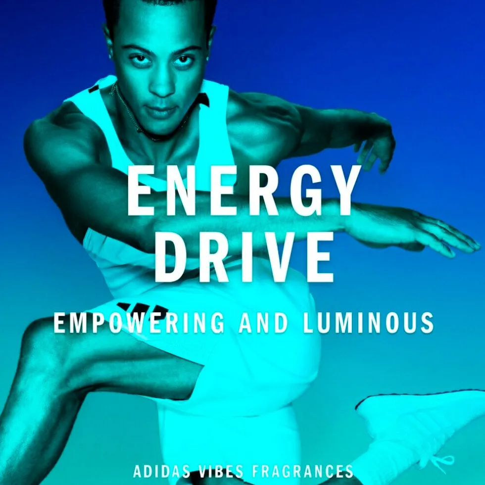 Voel de vibe en de bruisende energie van Adidas Vibes Energy Drive Eau de Parfum. Hij is krachtig en helder, als een uitbarsting van energie die niet te stoppen valt, wanneer niemand je tegen kan houden.