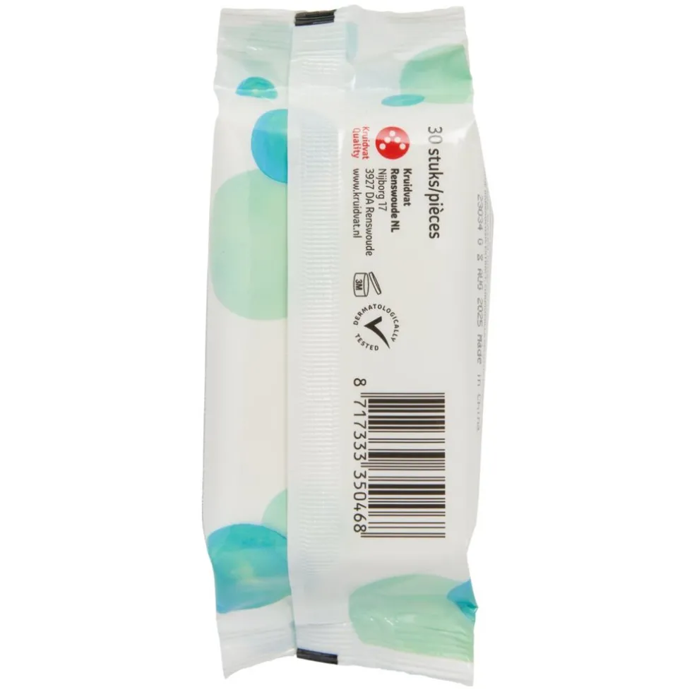 Kruidvat Verfrissingsdoekjes zijn verrijkt met aloë vera en kamille en zijn dermatologisch goedgekeurd. Sluit na gebruik de verpakking en gooi het gebruikte doekje in de afvalemmer (niet doorspoelen).
