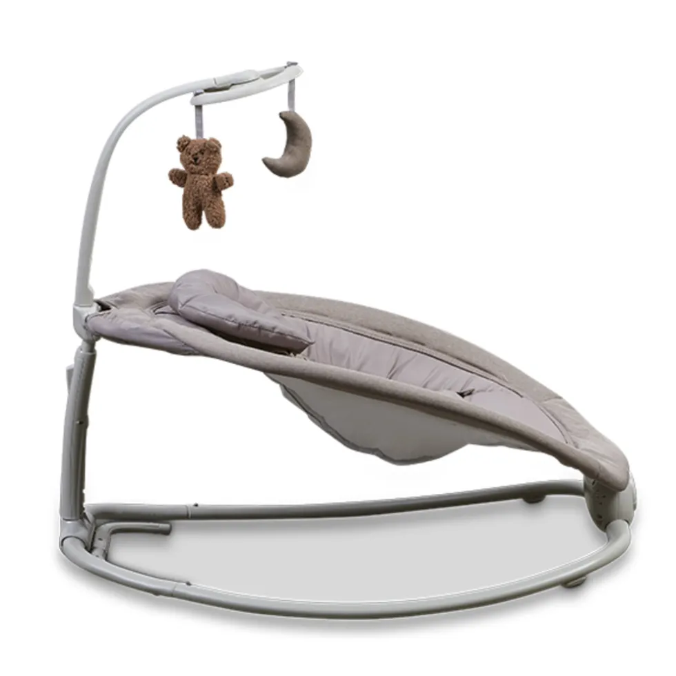 Deze luxe wipstoel van het merk Novi is perfect om je kleintje tot rust te laten komen en heerlijk te laten relaxen. De wipstoel is voorzien van kalmerende melodietjes en zachte trillingen die helpen de baby te kalmeren. Ook is de wipstoel voorzien van een speelboog met interactie speeltjes, welke kunnen bijdragen aan de ontwikkeling van de hand- en oogcoördinatie. De rugleuning van Nadine is ergonomisch vormgegeven en kan in 4 verschillende ligstanden worden versteld waardoor er altijd een positie perfect is voor jouw baby. Verder is Nadine uitgerust met een hoofdkussentje en 5-puntsgordel voor de veiligheid, en luxe bekleding welke fijn aanvoelt voor jouw kindje.