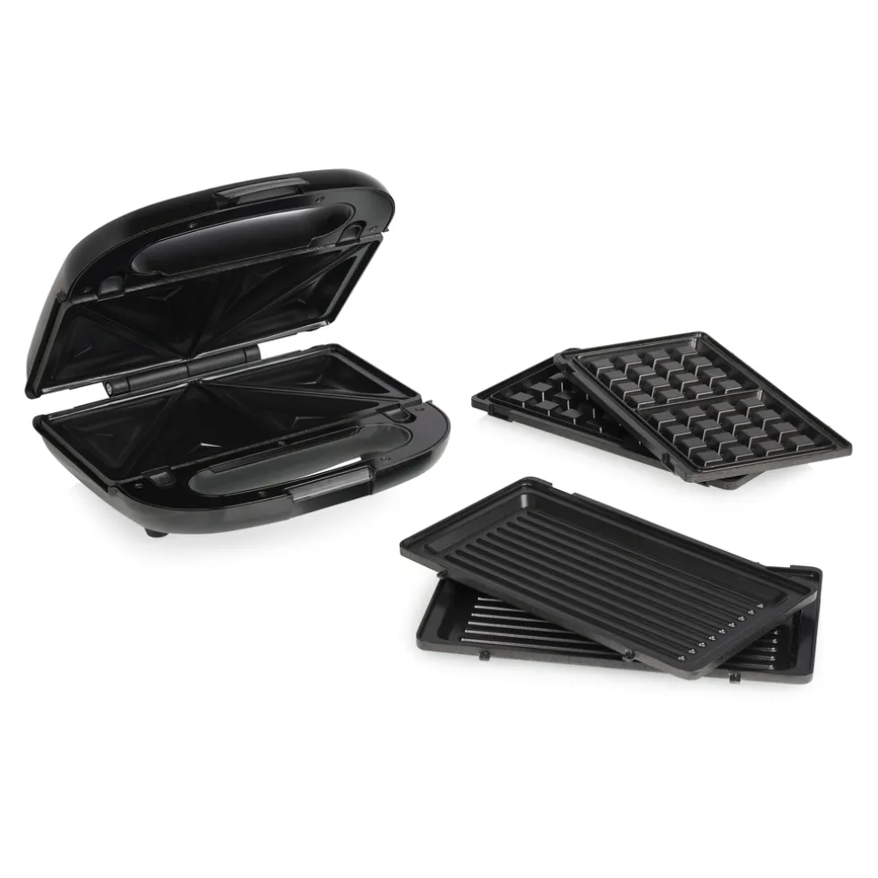 Dit tosti-ijzer is ideaal voor het snel en makkelijk bereiden van heerlijke wafels, panini’s en sandwiches. Het tosti-ijzer is uitgerust met een antiaanbaklaag voor eenvoudige reiniging. Met power on en ready indicatielampjes voor eenvoudig gebruik.