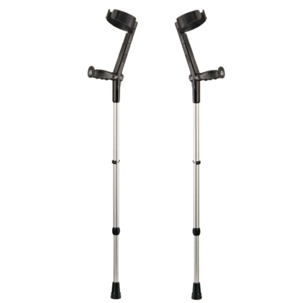 De krukken met zachte handvatten zwart zijn handige en comfortabele elleboogkrukken die u helpen met lopen wanneer u een been niet of verminderd kan belasten. De stijlvolle krukken zijn uitgerust met zachte anatomische handvatten die comfortabel in gebruik zijn. Bovendien zijn deze krukken verstelbaar van 75 cm tot 97 cm, gemeten vanaf de grond tot aan het handvat. De manchethoogte is ook verstelbaar van 22 cm tot 25 cm, gemeten vanaf het handvat. De krukken hebben een gesloten manchet. Dit product is een medisch hulpmiddel.