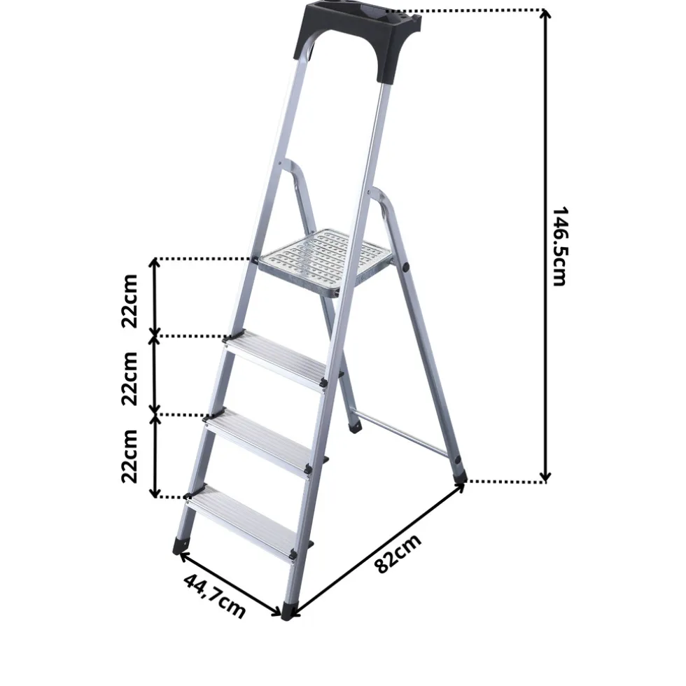 Outlet Rijoka Huishoudtrap Aluminium 4 Treden Anti Slip Treden Opbergkapje