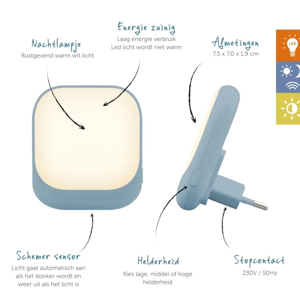 Outlet Zazu Blauw Automatisch Led Nachtlampje