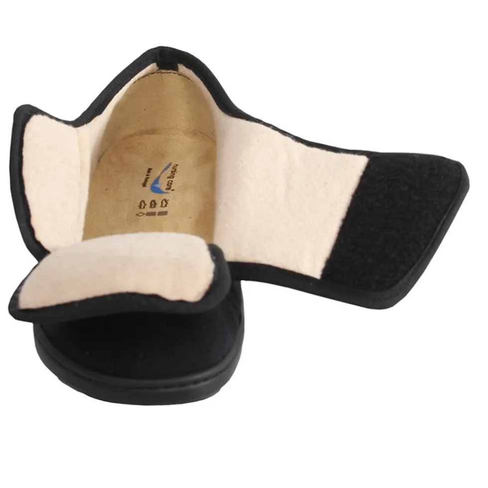 De Arrábida Verbandschoen in zwart is ontworpen voor optimaal comfort, maximale toegankelijkheid en een perfecte pasvorm, ongeacht de voetvorm of -conditie. Deze schoen voor dames & heren combineert functionaliteit met draagcomfort en is bij uitstek geschikt voor mensen met gevoelige, gezwollen of verbanddragende voeten.