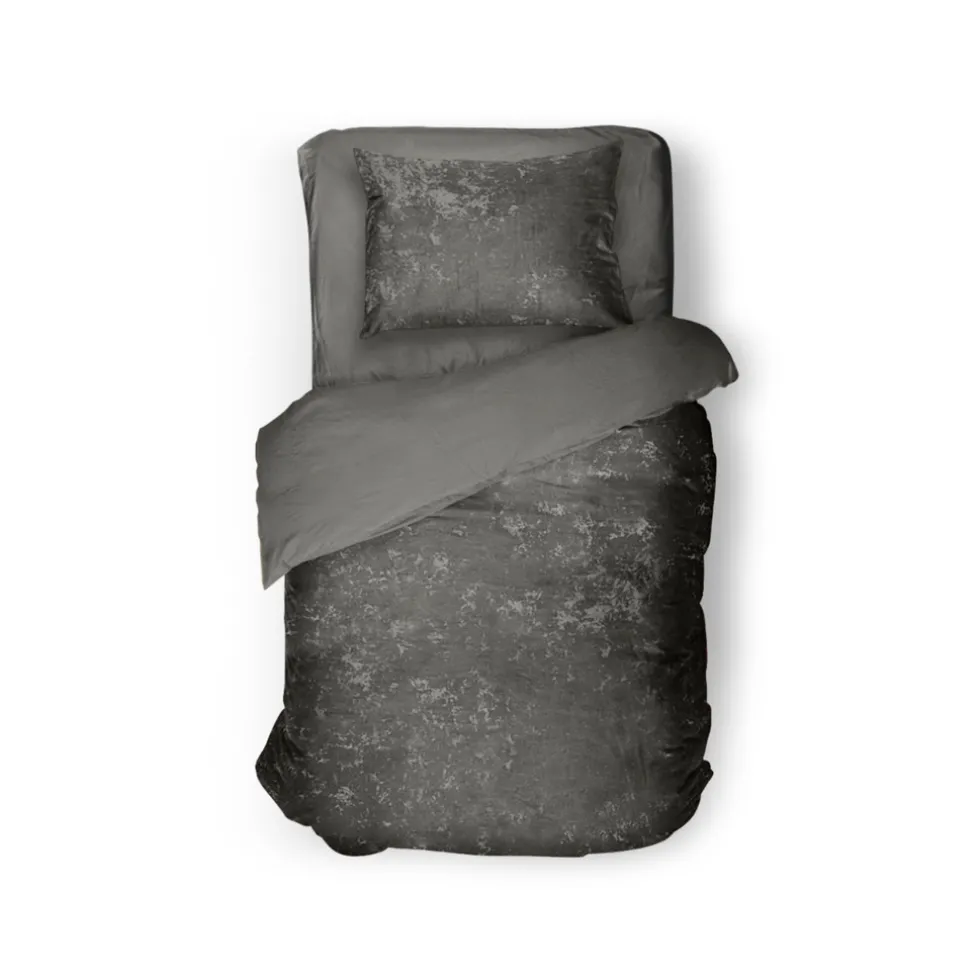Sale Eleganzzz Dekbedovertrek Crushed Velvet – Dark Grey 140×200/220cm