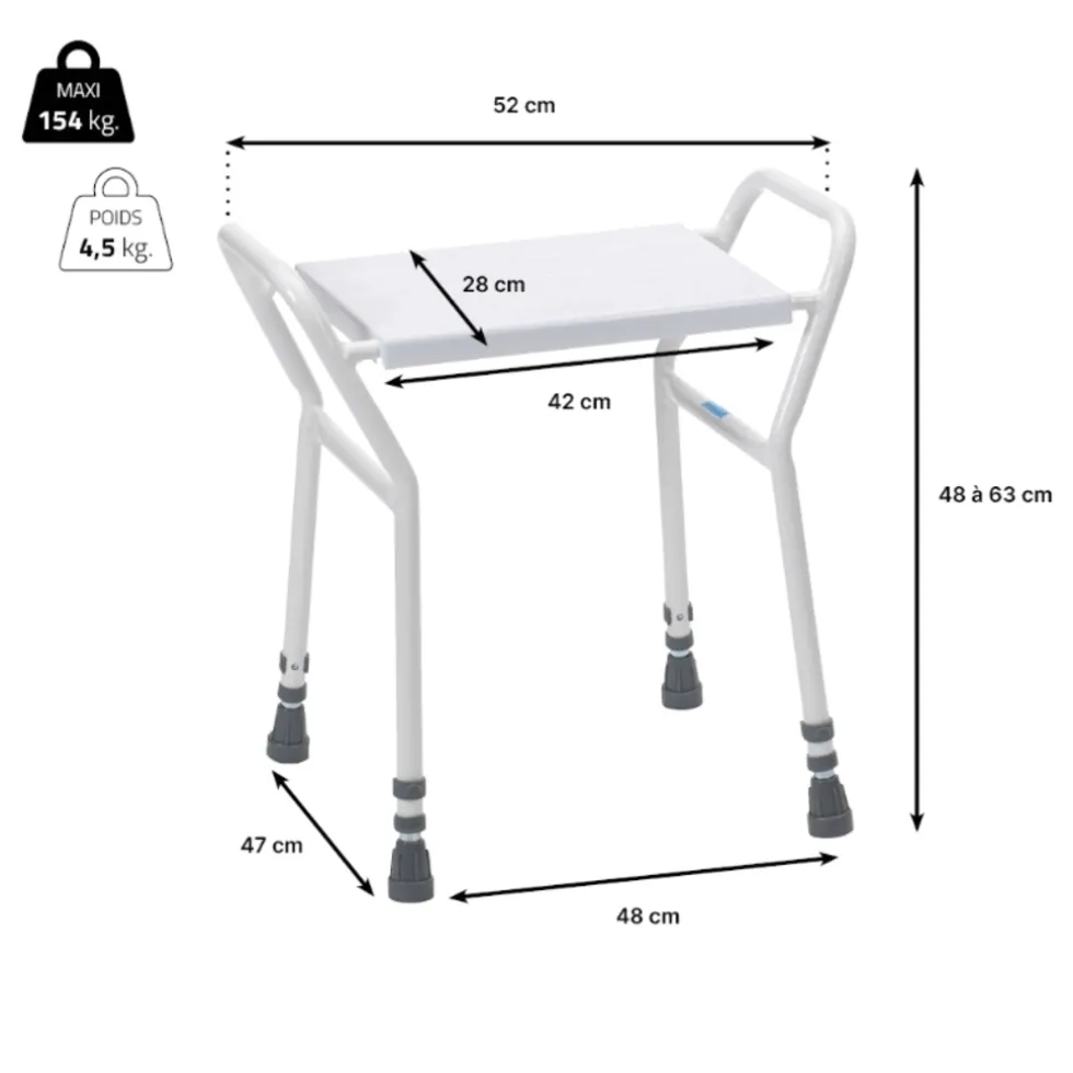Een douchekruk helpt u om zittend te kunnen douchen en verminderd uw kans op uitglijden. Dit kan van pas komen wanneer u bijvoorbeeld slecht ter been bent. U kunt de hoogte van de kruk verstellen. Verder is de kruk uitgerust met twee handgrepen waar u zich aan vast kunt houden. Aan de onderkant zijn antislip doppen aangebracht.