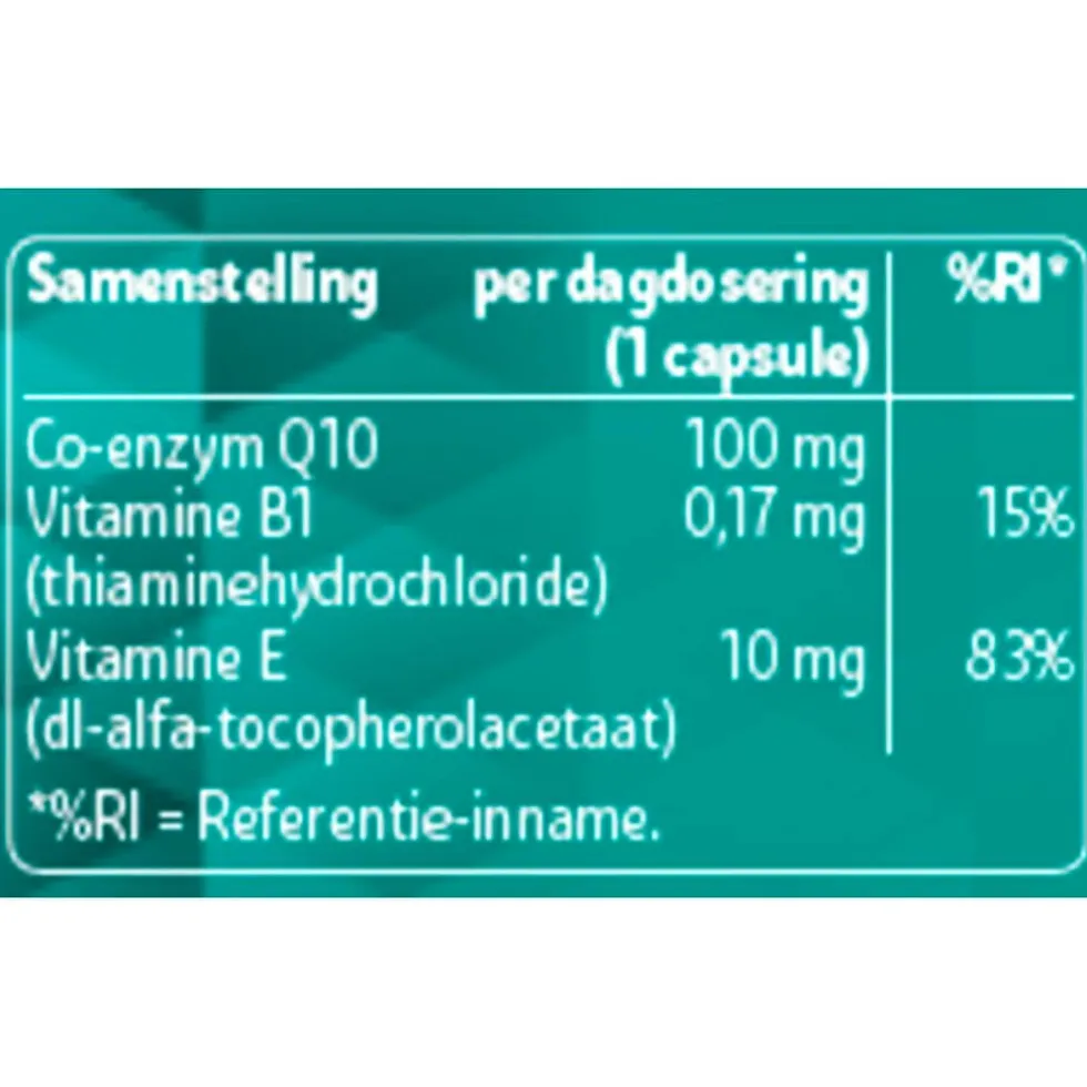 Kruidvat Q10 100mg Capsules bevatten vitamine B1 dat het energieniveau ondersteunt en bijdraagt aan de geestelijke veerkracht.