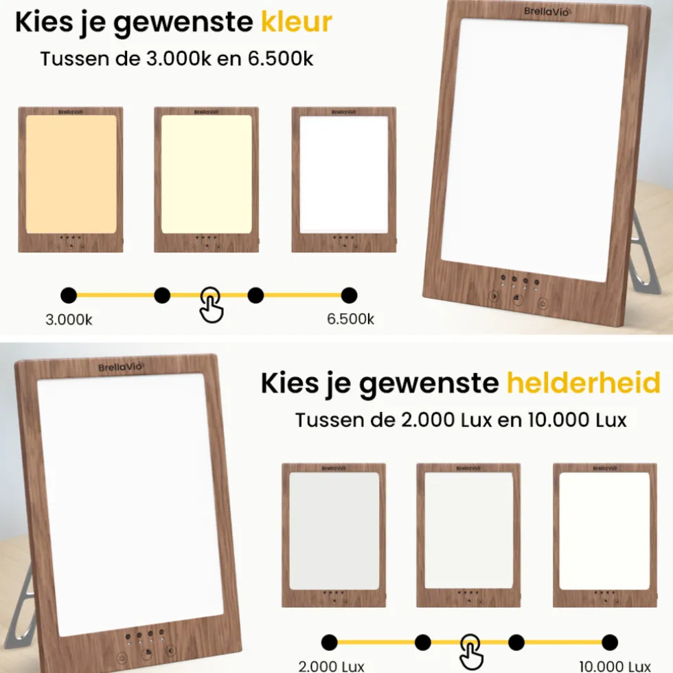 Een gemiddelde bewolkte dag heeft een lichtintensiteit van ongeveer maar 1.000 lux. Deze BrellaVio daglichtlamp levert een lichtsterkte van maar liefst 10.000 lux, wat dicht in de buurt komt van natuurlijk daglicht op een heldere dag. Hierdoor geniet je binnenshuis van helder en aangenaam licht, zelfs op donkere dagen of in ruimtes waar weinig daglicht binnenkomt.