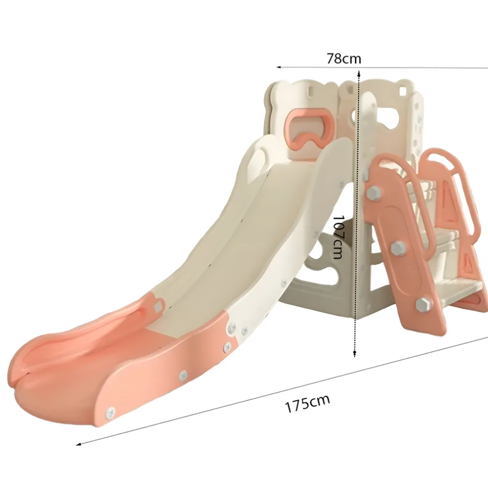 Plaats het speeltoestel op een vlakke ondergrond en zorg ervoor dat er voldoende ruimte is rondom de glijbaan voor veilig gebruik.