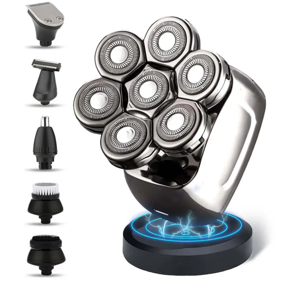 Ben jij ook klaar met ongewenst haar en botte scheermessen die wondjes achterlaten? Ontdek de Sansbeauté® 6-in-1 Hoofdscheerapparaat! Deze geavanceerde Skull Shaver beschikt over 7 flexibele 7D scheerkoppen en multifunctionele opzetstukken, waardoor je razendsnel elk haartje op je hoofd, gezicht en lichaam kunt verwijderen. De gepatenteerde scheerbladen passen zich moeiteloos aan de contouren van je huid aan, voor een grondige en comfortabele scheerbeurt. Met zes veelzijdige opzetstukken heb je alles wat je nodig hebt voor een complete verzorging in één apparaat. Het LED-display toont wanneer het apparaat moet worden gereinigd of opgeladen, en het is volledig waterproof, ideaal voor een snelle behandeling onder de douche. Met de Sansbeauté® 6-in-1 Pro Skull Shaver geniet je van een gladde, zachte huid zonder wondjes of irritaties. Ervaar het zelf en bestel nu!