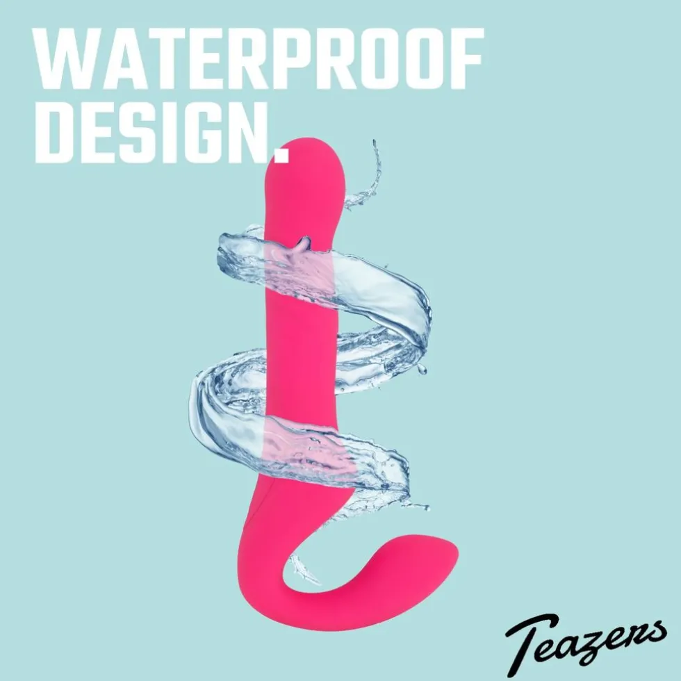 Deze strapless strap-on vibrator van Teazers laat beide partners genieten en kan zonder harnas gedragen worden. De vibrator is gemaakt van lichaamsveilig siliconen en voorzien van 2 uiteinden: 1 voor de vrouw en 1 voor haar partner. De kern is stevig maar flexibel genoeg voor een comfortabele anale of vaginale stimulatie en de vibrator blijft perfect op zijn plek zitten dankzij de ergonomische vormgeving. De 2 motoren beschikken over maar liefst 10 vibratiestanden en 3 stootfuncties welke je eenvoudig kunt bedienen met de draadloze afstandsbediening. Kies jullie favoriet, zelfs in bad, want de vibrator is geheel waterproof!