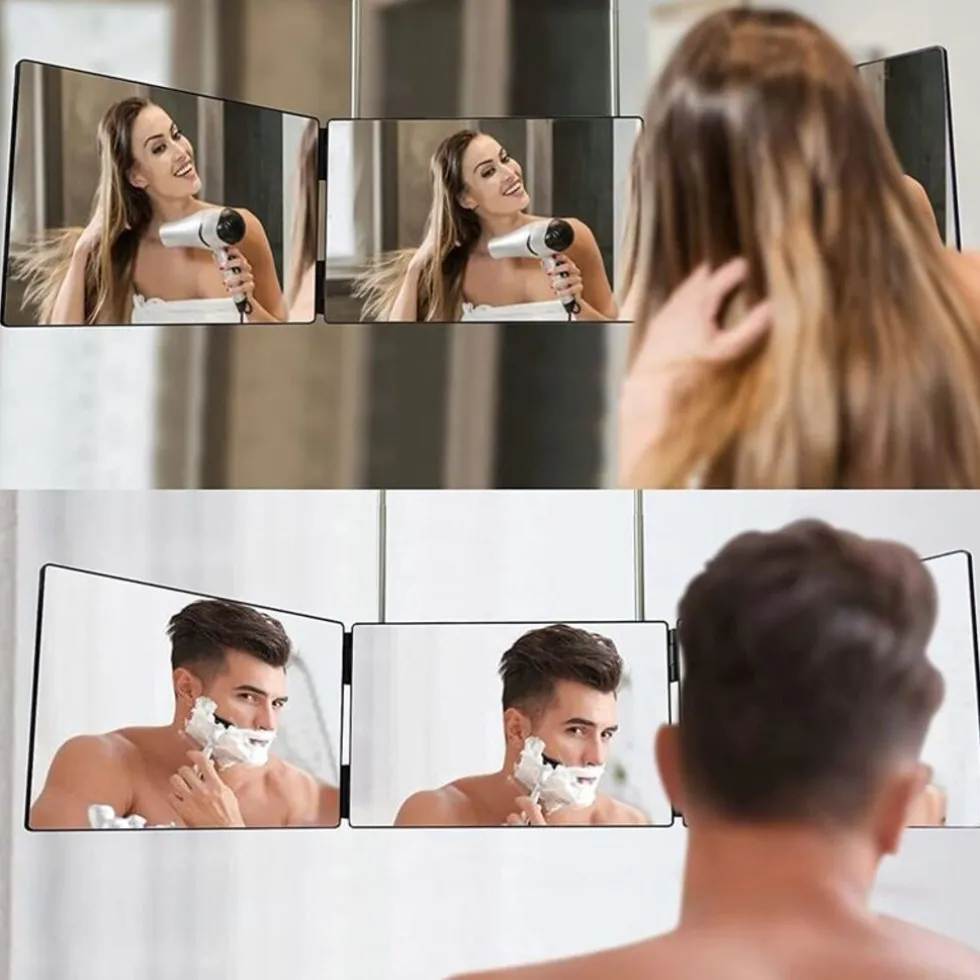 De UNIQ 360 Opvouwbare Make-up Spiegel is de perfecte combinatie van functionaliteit en flexibiliteit. Dankzij het slimme driedelige ontwerp kun je de spiegel volledig uitklappen voor een panoramisch zicht – ideaal voor make-up, huidverzorging of hairstyling. Gebruik hem als tafelspiegel of hang hem gemakkelijk op aan de geïntegreerde haak.